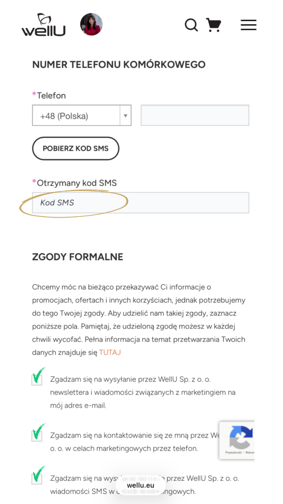 To najważniejszy moment! Po wypełnieniu danych otrzymasz bezpłatny SMS z kodem. Wpisz go na stronie, a następie zaznacz wszystkie zgody.